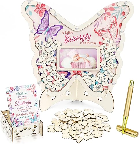 SelfTek Livre d'or pour fête prénatale, 63 pièces, livre d'or alternatif avec cadre photo, cadre photo de vœux en bois, cadeau de bébé comme souvenir, cadeau d'anniversaire et de baptême