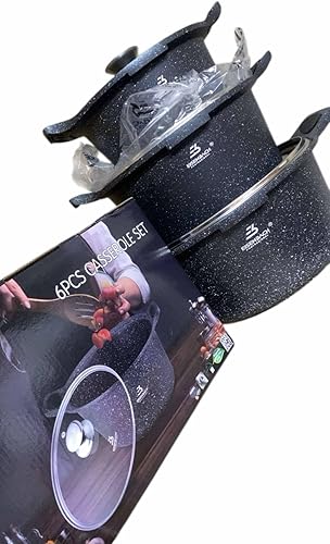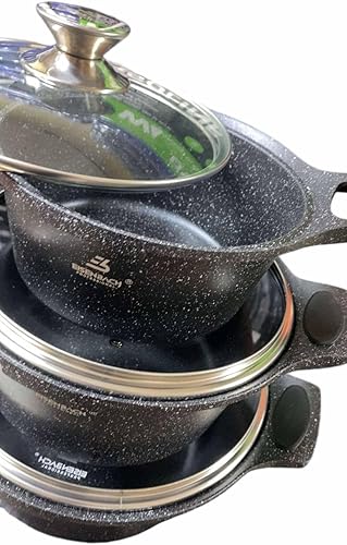 Professional, Set de 3 Marmites en Pierre 20/24/28 cm, Compatible Tous Feux dont Induction, Revêtement Anti-adhésif sans PFOA, Noir