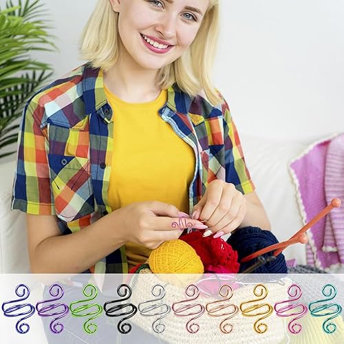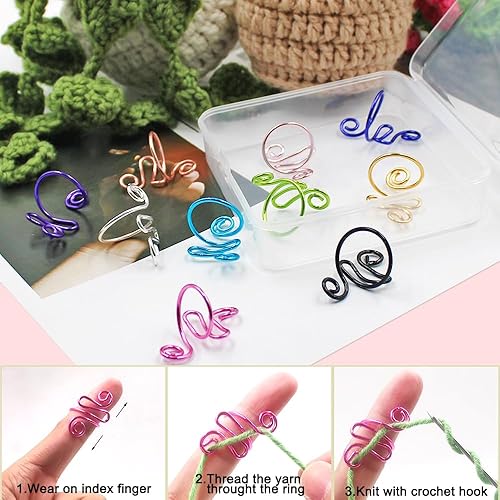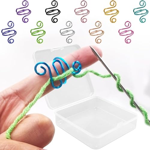 AFUNTA Lot de 10 anneaux de crochet réglables pour tricot au doigt Fournitures de crochet Support de fil Compteur de points pour crochet avec boîte de rangement