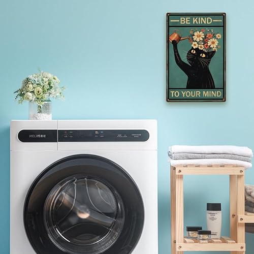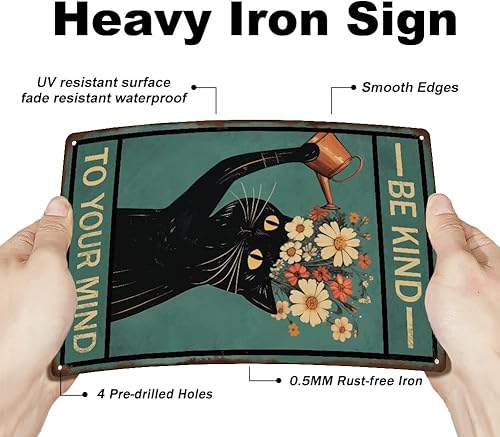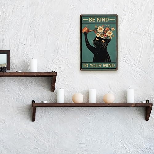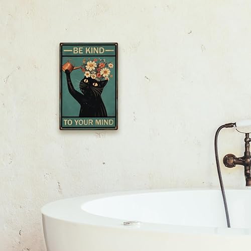 SUPERDANT Plaque Metal Vintage pour Chat Noir Soyez Gentil avec Votre Plaque Decorative Metal pour Chat Arrosage de Chat Plaque Murale Decorative Amusants Arts Muraux en Métal Deco Vintage