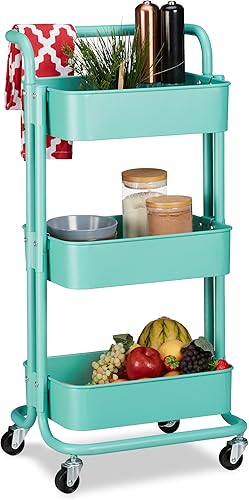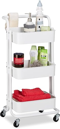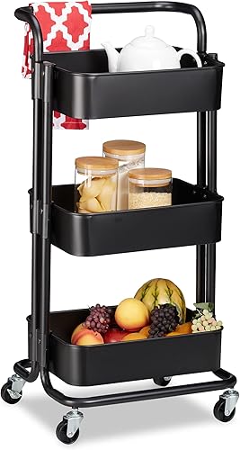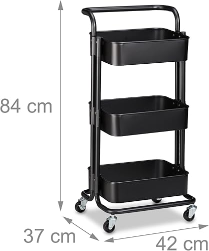 Relaxdays Chariot sur roues, 2 freins, pour tous services dans la cuisine, le bureau, le bain, étagère en métal, noire