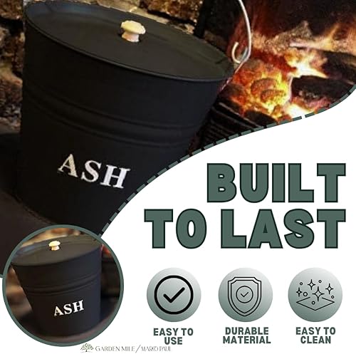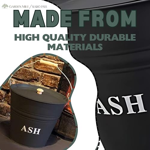 Marco Paul Seau à cendres en métal avec couvercle Gris foncé Capacité 12 l Idéal pour cheminées, poêles à bois et feux de charbon