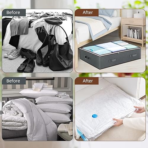 Sacs de Rangement pour Dessous de Lit,Rangement Sous Lit De Grande Capacité,Avec 1 Sacs Sous Vide, Boîte de Rangement pour Vêtements Sous le Lit,Rangement Adapté aux Couettes, Couvertures et Literie