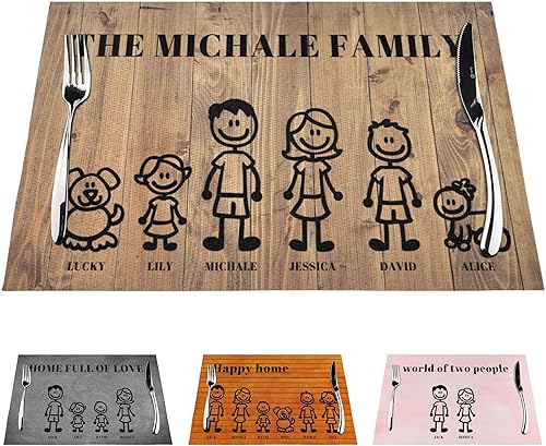 Sets de table familiaux personnalisés - Créez votre propre set de table pour 6 membres de la famille - Set de table avec votre propre photo et texte - Set de table cadeau pour anniversaires, Noël, ami