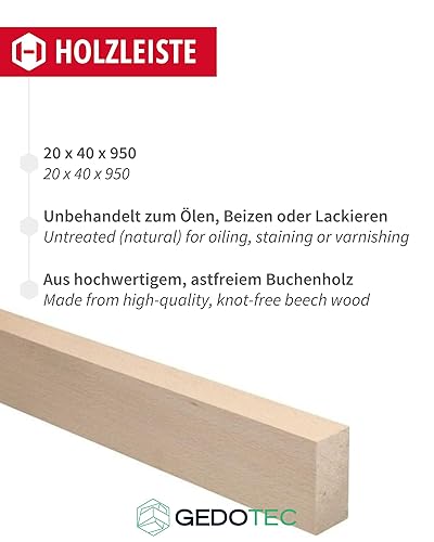 Gedotec baguettes en bois pour bricoler - planches en bois pour construire en bois de hêtre 100 cm | 5 pièces 20x40x950 mm | BASIC | bois polyvalent pour bricoler et construire des objets divers | t