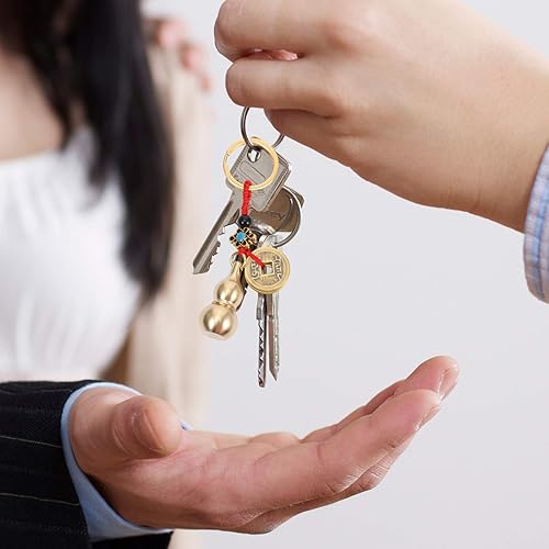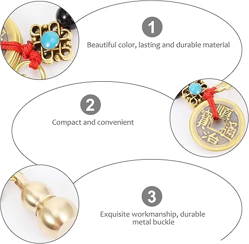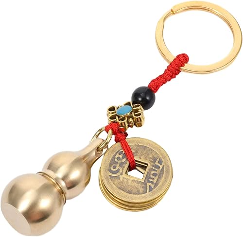 Gourde Chinoise WU Lou Porte-Clés avec des Pièces de Monnaie Feng Shui Ornement Calebasse Porte-Clés Décorations pour Réussir en Toute Sécurité Richesse Et Bonne Chance