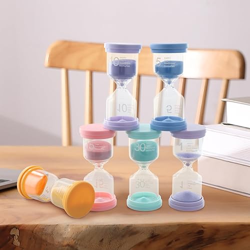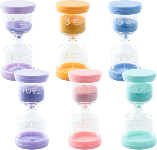 Hourglass Lot de 6 sabliers colorés pour enfants 1//5/10/15/20/30 minutes, sabliers pour la vie des enfants, apprentissage, minuterie de jeu, cadeaux créatifs