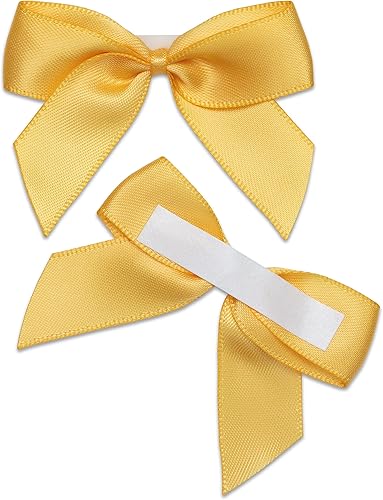 Italian Options Lot de 12 nœuds en ruban de satin auto-adhésifs 5 cm de largeur, or jaune