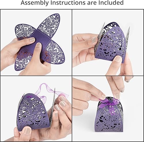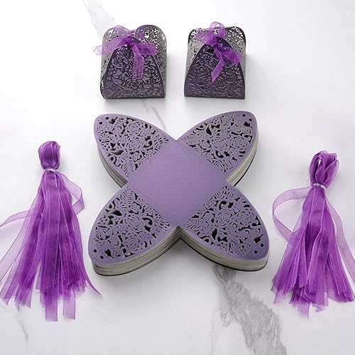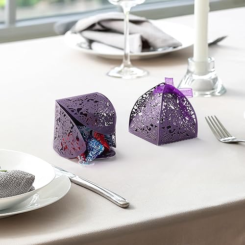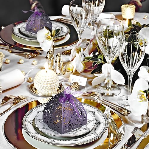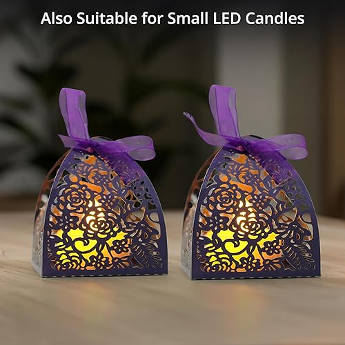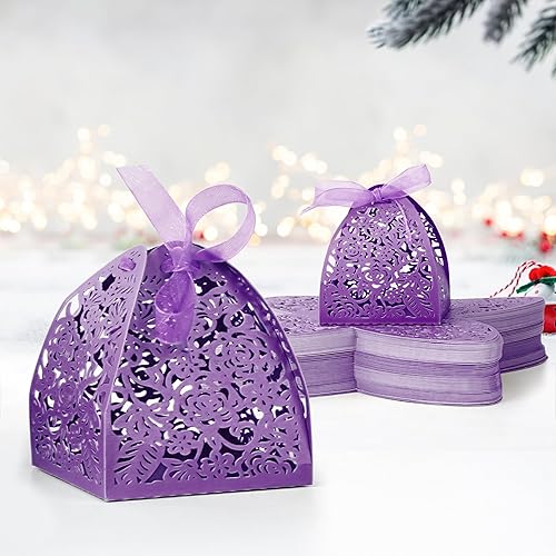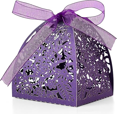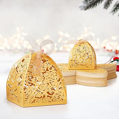 Winter Shore Lot de 100 Boite Cadeau Dorée avec Motifs de Rose Découpés au Laser avec Ruban - 6 x 6 x 7 cm Boîte Cadeau Noel, Mariage, Anniversaire, Mariage - Alimentaire, Sans BPA