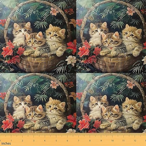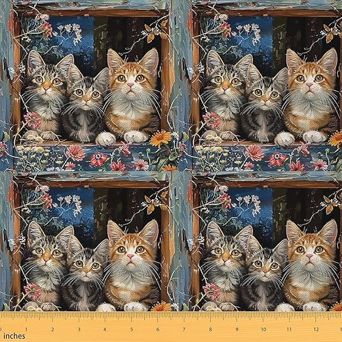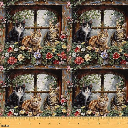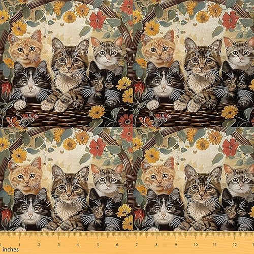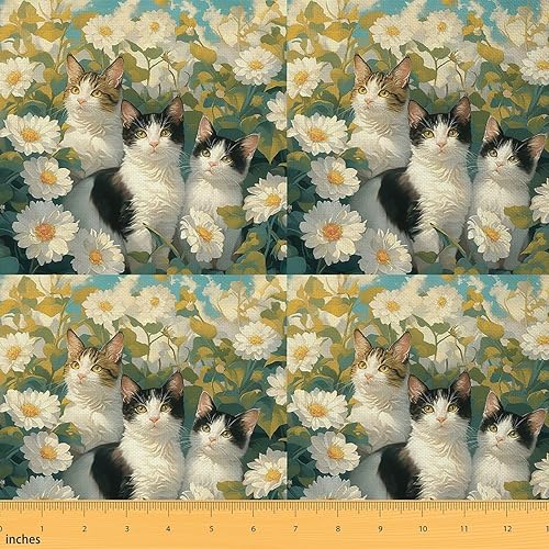 Homemissing Cute Chat Tissu de couture Pour Chaises Garçon Fille Cute Kitten Tissus au Metre Pour Enfants Daisy Floral Décoratif Tissu 460x150cm Chat Cadeaux pour amants Tissus Couture