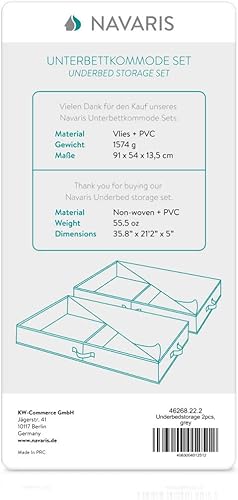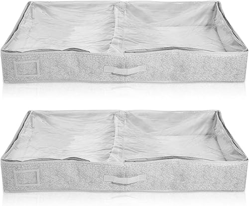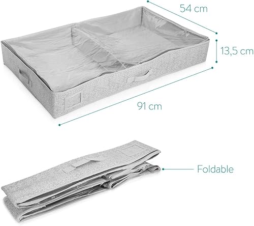 Navaris Rangement sous Lit - Lot 2X Sac de Rangement sous Lit 91 x 54 x 13,5 cm env. 66 L - Housse de Dessous de Lit avec Couverture Transparente