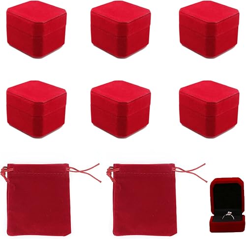 6 Pièces Fiançailles Earrings Jewelry Box, Bijoux pour Bagues Pendentif Écrin, Boîte à Bagues de Fiançailles en Velours, pour Bague de Fiançailles, Mariage, Anniversaire de Mariage