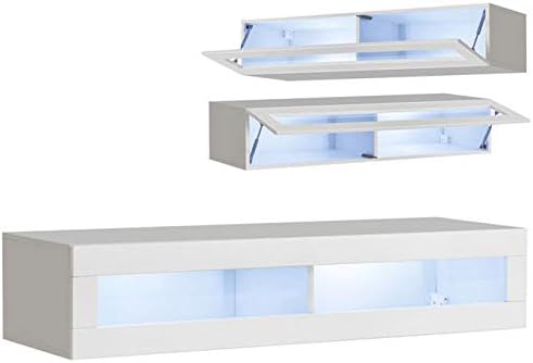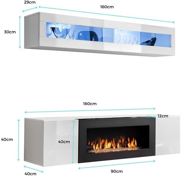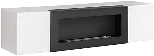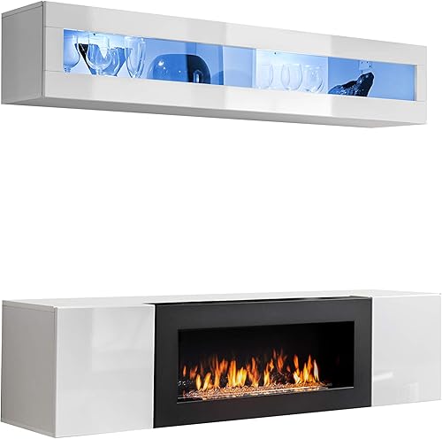 MB Muebles Bonitos, Ensemble de Meubles de Salon Krista 2A avec Cheminée à Bioéthanol, Design Modulaire Moderne, Lumière LED, Couleur Blanc, Longueur 160 cm