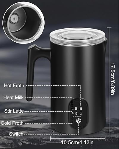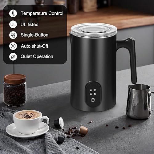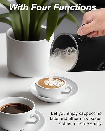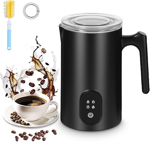 Mousseur à lait électrique 4 en 1 de 580 ml avec revêtement anti-adhésif, arrêt automatique, commande One Touch, avec brosse de nettoyage, mousseur, convient pour le lait chaud, cappuccino, café