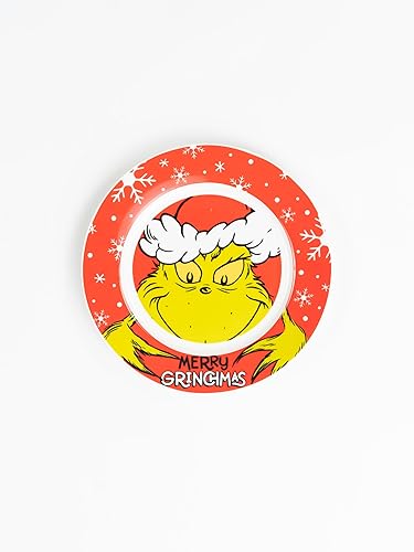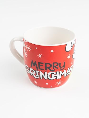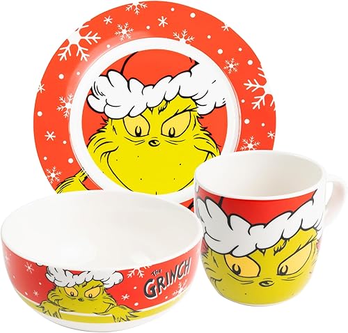 United Labels Grinch Merry Grinchmas Ensemble de petit-déjeuner 3 pièces, rouge, vaisselle en porcelaine avec assiette Ø 19 cm, tasse 220 ml et bol 330 ml