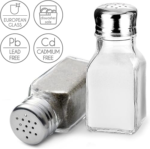CRYSTALIA Grand Premium Salière et Poivrière en Verre, Design Clair, Classique Style, 100% SANS PLOMB, Corps en Verre Avec Couvercle en Acier Inoxydable, Poivrière et Salière