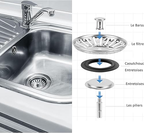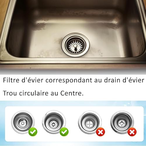2 Filtre d'évier de Cuisine de Salle de Bains en Acier Inoxydable, Cartouche de Filtre d'évier réglable en Hauteur de 82mm