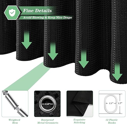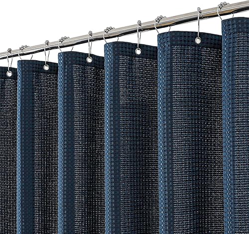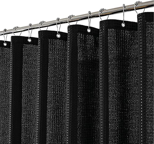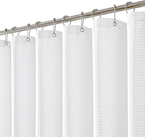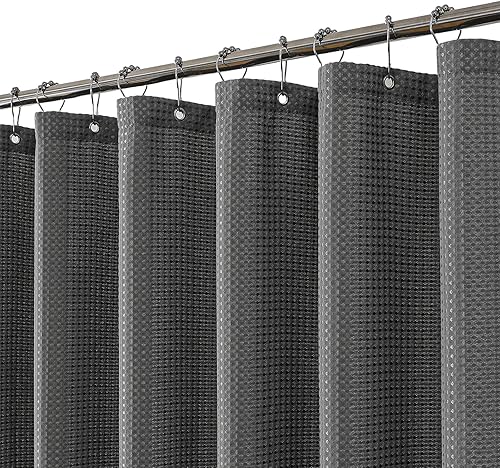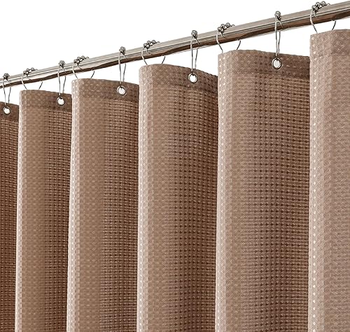 meioro Rideau de Douche Beige, Anti Moisissure Waffle Tissu Texturé Lourd Rideaux avec 12 Crochets, 180 x 240cm Imperméables Drap de Douche de Luxe en Tissu Lesté pour Salle de Bain, BaigGrise