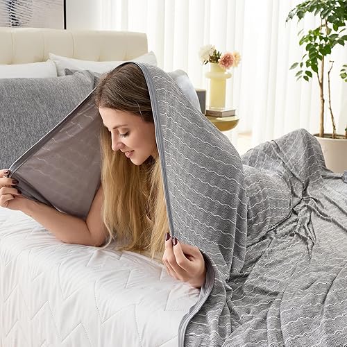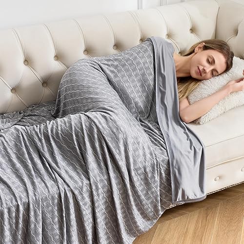 OIGAE Couverture rafraîchissante pour lit, canapé - Couverture d'été fine, légère, respirante et douce - Motif jacquard double face - Garde au froid - 130 x 150 cm - Gris