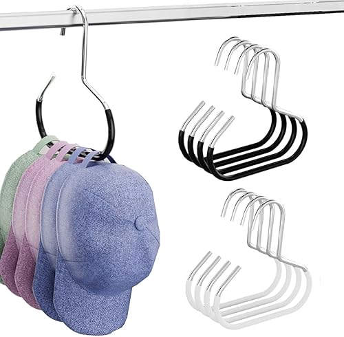 Support de Casquettes, Accroche Casquette, Organisateur de Chapeaux Polyvalent, Crochets pour Rangement de Casquettes, Convient pour les Chapeaux, les Écharpes, les Cravates (8 pièces, Noir et Blanc)
