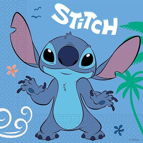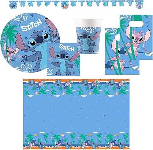 Procos - Kit de fête Stitch grand, 46 pièces pour anniversaire d'enfant ou fête à thème, décoration de table
