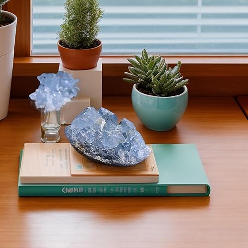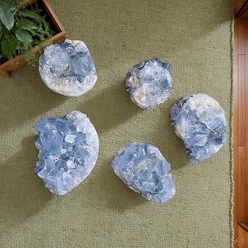 Cristaux de Célestine Brute - Cristaux de Célestine, Pierre brute de forme irrégulière, Exemples de pierres précieuses pour la décoration de la maison, collection de pierres pour l'étagère du salon
