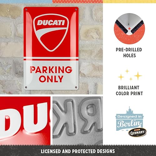 Nostalgic-Art Plaque rétro, 20 x 30 cm, Ducati – Parking Only – Idée cadeau pour motards, Official License Product (OLP), en métal, design vintage
