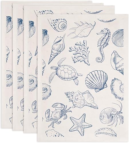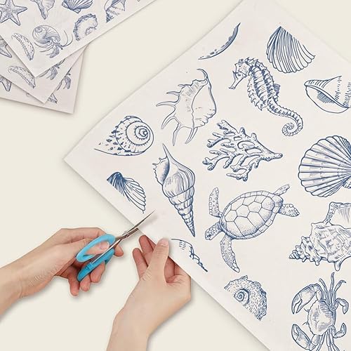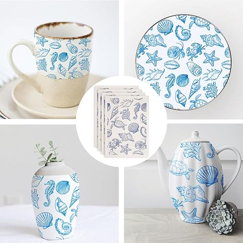 SUPERDANT 4Pcs Transfert Ceramique Sous Glaçure Motif Vie Marine Decalcomanie en Céramique pour Poterie Coquilles Saint Jacques Hippocampes Tortues Papier Transfert pour Poterie