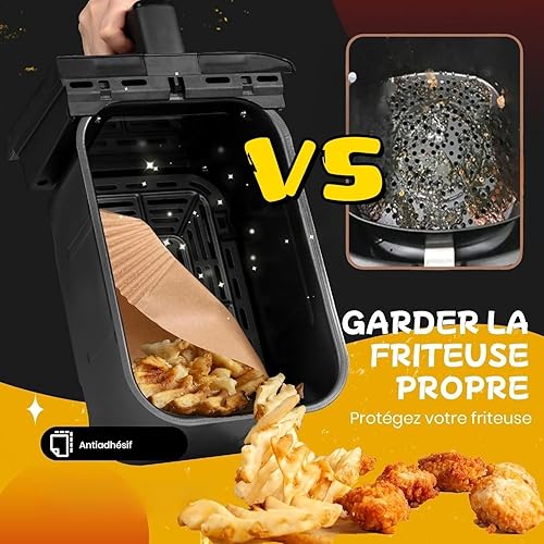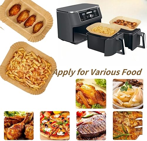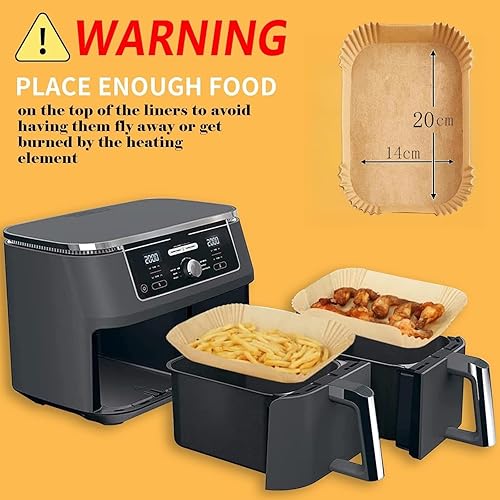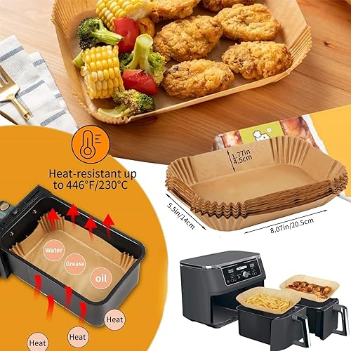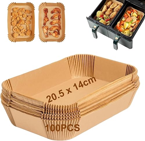 Papier Cuisson pour Ninja Air Fryer, 100 Pièces 20,5x14cm Rectangulair Paper Liners Friteuse Sans Huile Accessoires pour Dual Zone Double Stack Friteuse à Air, compatible avec Ninja AF300EU/AF400EU