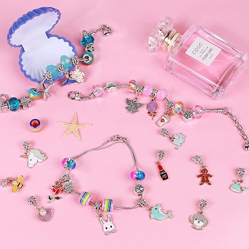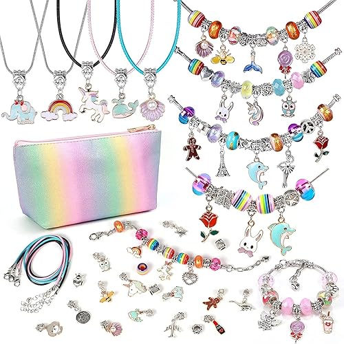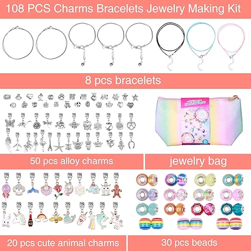 Tacobear 108Pièce Bricolage Bracelet Charms Kit Fabrication Bracelet Enfants Fille Faire Breloques Bracelet DIY Bijoux Kit Création Bijoux Cadeau pour Fille 4 5 6 7 8 9 10 Ans
