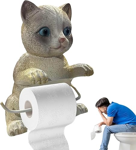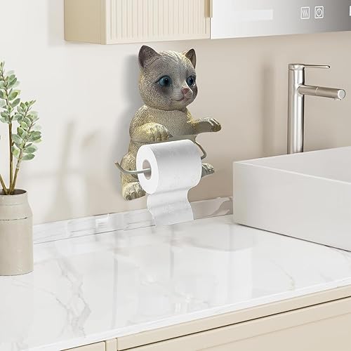 Porte-roulis De Toilette pour Chat, Porte-Papier Toilette en Forme De Chat Amusant, Distributeur De Mouchoirs Murale en Résine, pour Cuisine Salle De Bain Chambre