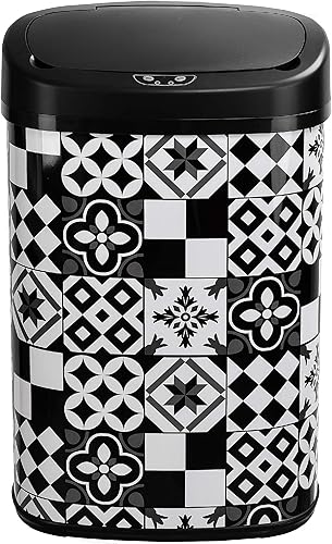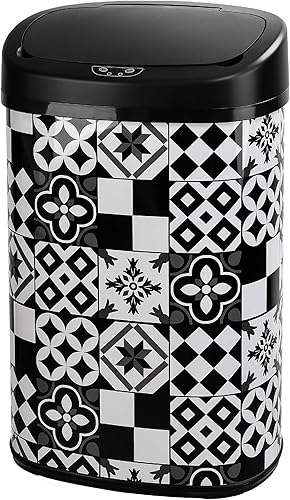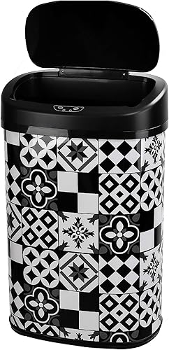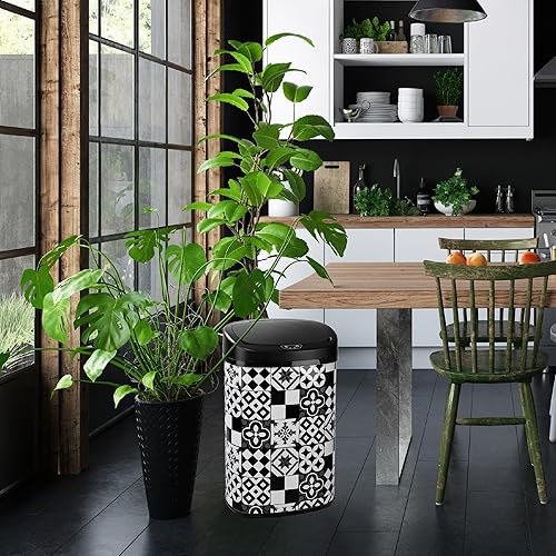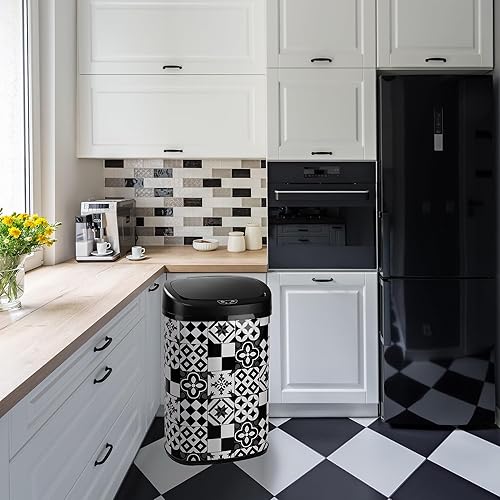 Poubelle de cuisine automatique 58L MAJESTIC Carreau de ciment Noir en acier INOX avec cerclage