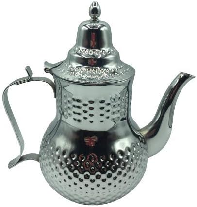 Théière marocaine réalisée en acier inoxydable décorée avec filtre intégré traditionnelle Modèle gravé avec design classique Arabe Fabriquée à la main Argenté 1,6 L