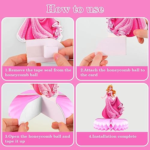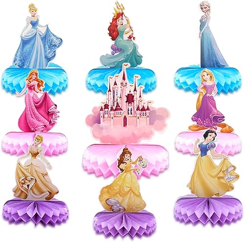 Lot de 9 décorations d'anniversaire mignonnes sur le thème de la princesse 3D, décorations de fête d'anniversaire en nid d'abeille pour décorations de table, accessoires de fête