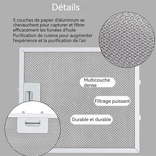 Filtre d'aération pour hotte aspirante - Maille métallique - 320 x 260 mm - 5 Couches en Aluminium - Pièce de Rechange pour hotte aspirante