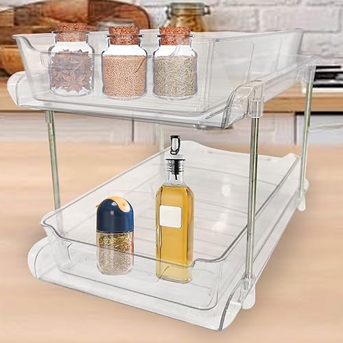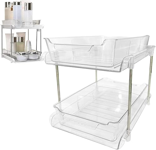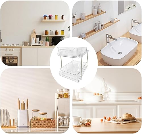 Tiroirs extensibles pour armoires, rangement sous l'évier, organiseur d'étagère à 2 niveaux sous l'évier – Étagère de rangement pour garde-manger, armoire réglable, organisateur de rangement pour
