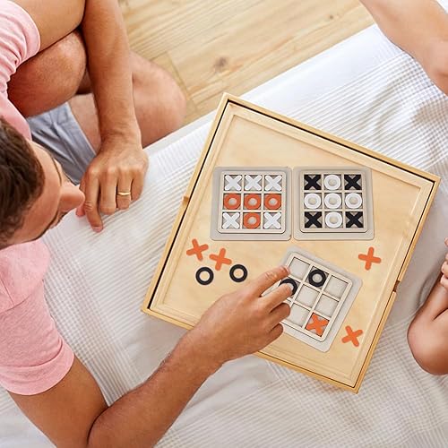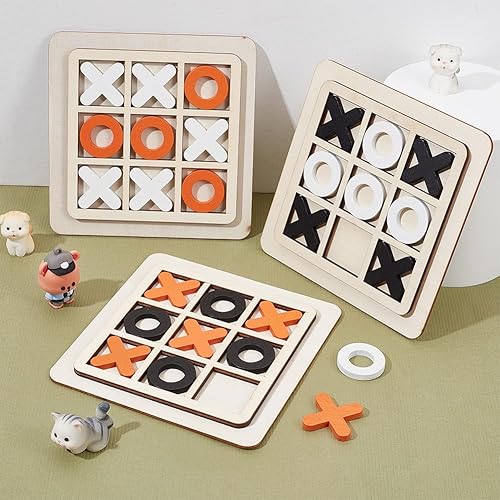 NBEADS 3 Sets 3 Couleurs Bois Tic Tac Toe de Société, Ensemble de Table en Bois XO Tic Tac Toe de Société Familial Classique pour Adulte Famille Intérieur Décor à la Maison, 15 × 15 cm