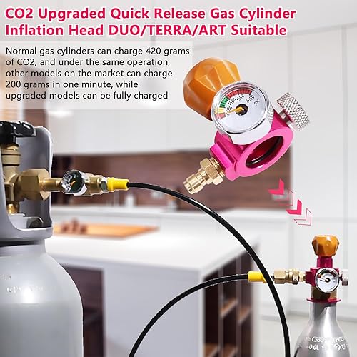 Adaptateur de Recharge de CO2, Adaptateur de Connexion Rapide pour Cylindre de CO2 Duo Terra Art Sodastream Adaptateur de CO2 sur Bouteille de 425g avec Manomètre 2000psi