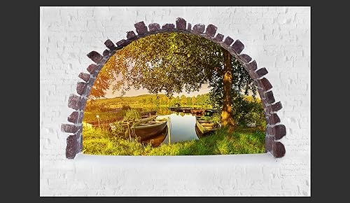 Papier peint murando intissé 300x210 cm Décoration Murale XXL Poster Tableaux Muraux Tapisserie Photo Trompe l'oeil Pierre Brique Fenetre Paysage Nature c-C-0123-a-a