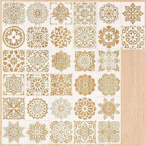 Pochoirs de Peinture,32 Pièces Pochoir de Peinture en Plastique,15 * 15cm Pochoir Mandala pour Peinture,Motif Mandala Découpe Laser,1Convient à la pulvérisation Murale