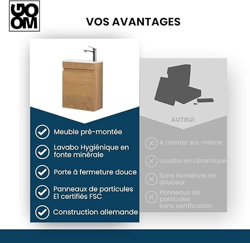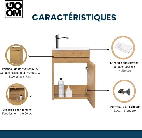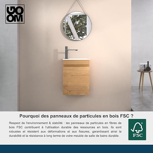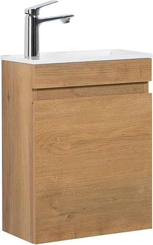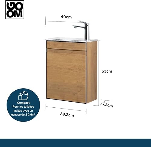 GOOM Meuble Lave-Mains LUGIS livré monté Lave-Mains WC avec Vasque avec Effet Lotus Ensemble Meuble Lave-Mains Complet 40cm (Chêne)