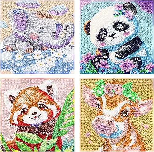 oupados 4 Pièces Diamant painting Enfant 5D DIY Broderie Diamant Kit Diamond Painting Kit Complet Convient pour L'artisanat de Décoration Murale de la Maison 15×15cm