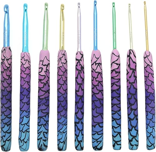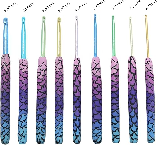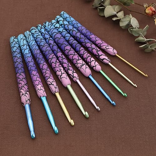 EMSea 9pcs Crochets de Sirène Aiguilles à Crochet Extra Longues Ensemble avec Poignée Ergonomique en Argile à Prise Souple de 2.25mm à 6.5mm pour Tissus au Crochet Artisanaux