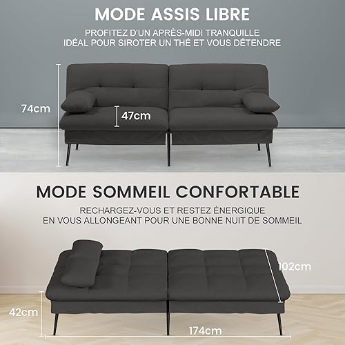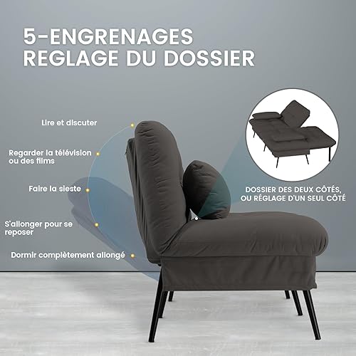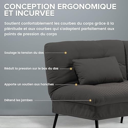 COMHOMA Canapé-lit avec Fonction de Couchage - Housse futon Convertible - Canapé d'angle - Canapé d'invité 3 Places - avec Dossier réglable en Tissu - Gris
