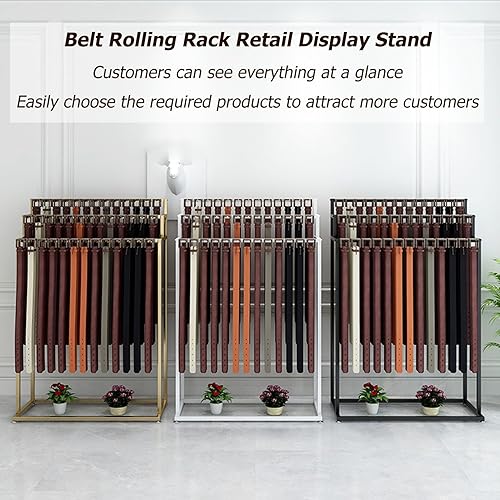 Présentoir de ceinture moderne avec roues autoportant et organiseur pour boutique, placard, étagères de rangement pour ceintures, cravates, hijabs, écharpes et sacs à main