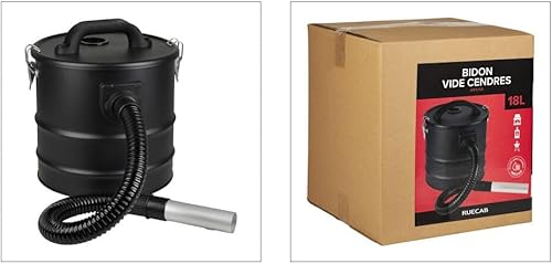 RUECAB - Bidon vide cendres, bidon vide cendres pour aspirateur - Capacité de la cuve: 18 L - Compatible avec le filtre réf: 648044 - Filtre lavable - Flexible: Ø 35mm x 0.8m - Embout aluminium: 15 cm