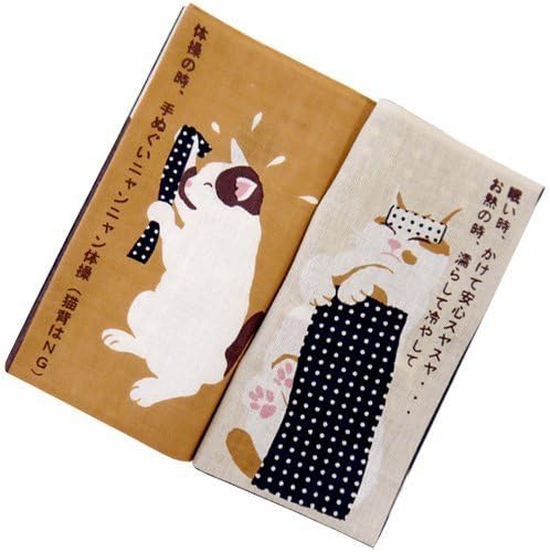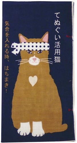 Hamamonyo Méthodes d'utilisation de la serviette Tenugui - Motif chat - Blanc - 34 x 90 cm