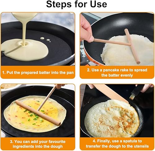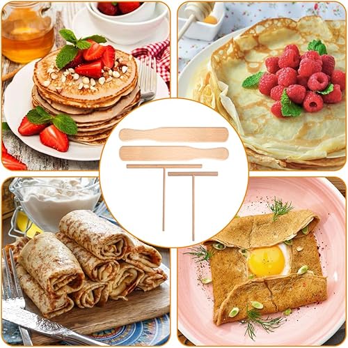 4 Pièces 12 cm/18 cm Bois de Hêtre Repartiteur Pate a Crepe, Spatule Bois Crepe, Forme en T Spatule a Crêpes en Bois Spatule en Crepiere Râteau Convient pour pancakes, jambon palates