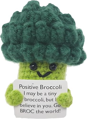 JOZMMZEOOA Brocoli Positive,Peluche Personnalisée Mini Motivantes Tricotée Brocolis Kreative Patate Crochet Positive Poupée,avec Petite Carte,Cadeau Retablissement,Cadeau Femme Anniversaire(Brocoli)