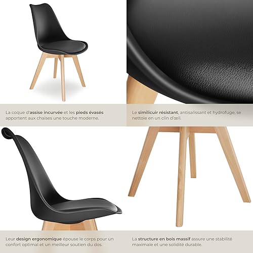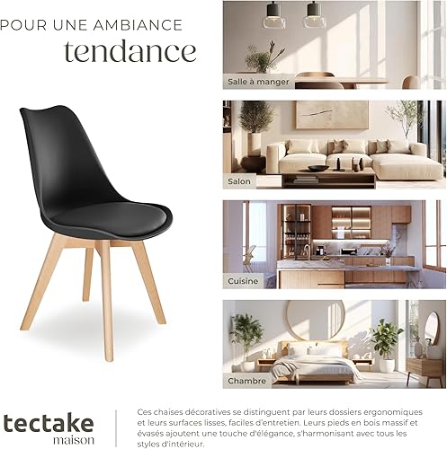 TecTake® Lot de 2 Chaises de Salle à Manger Design Scandinave Chaise Confortable Rembourrée avec Pieds en Bois Massif Meuble Salon pour Salon, Coiffeuse, Chambre, Cuisine, Bureau, Cabinet